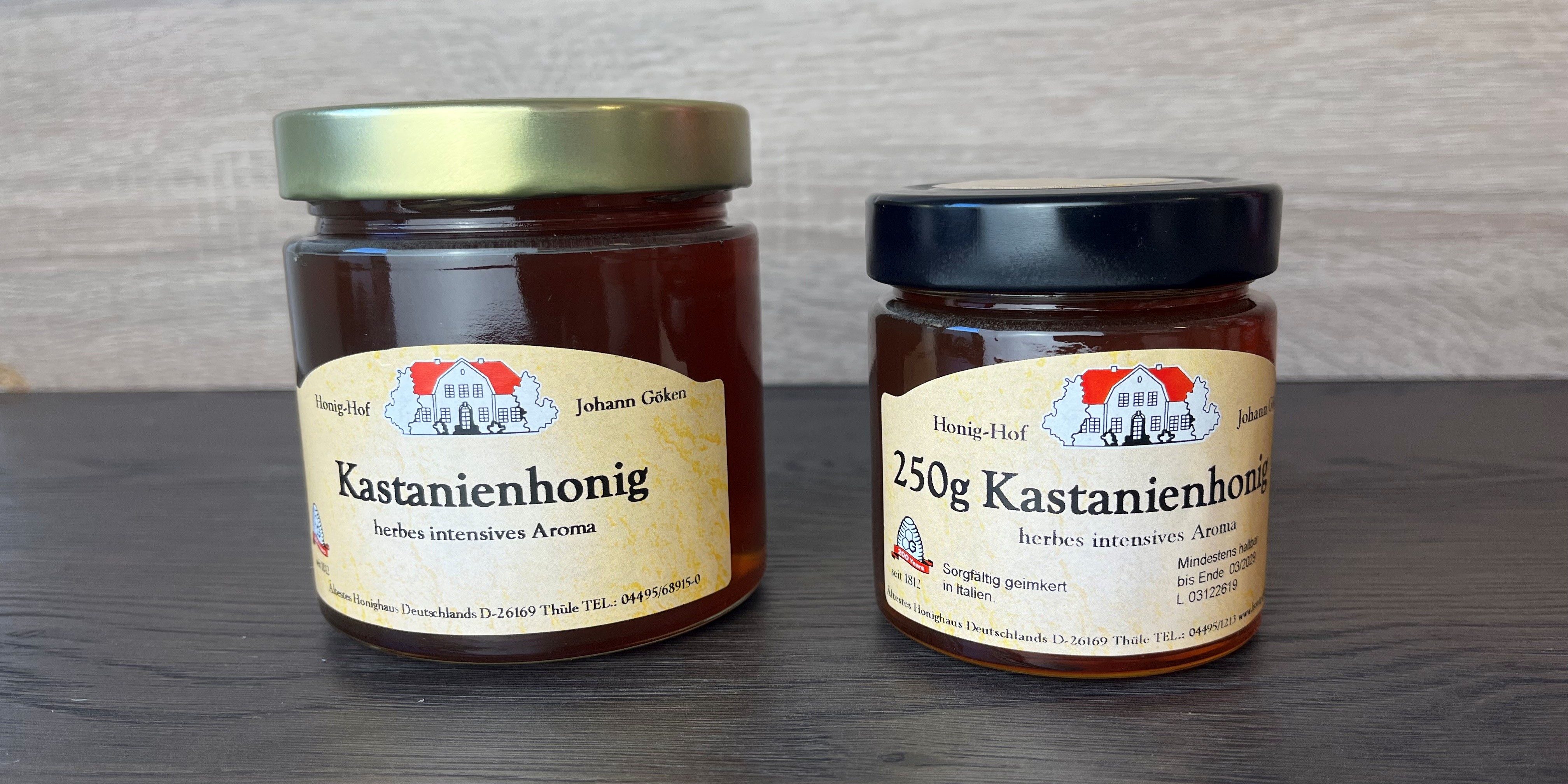 Dieser dunkle Honig besitzt einen intensiven Duft und bleibt lange flüssig. Einer der intensivsten Honige überhaupt mit einem sortentypisch nachhaltig herben Aroma. Sorgfältig geimkert in Italien.